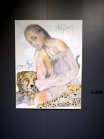 Colored Pencil, Charcoal, Acrylic Paint, Chalk, Archival Ink on thin gallery-wrapped canvas.